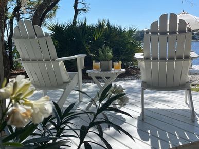 The FRONT deck is ideal for a little afternoon R&R while sitting in the Adirondack chairs perfected only with a gulf breeze, a book and a favorite beverage.